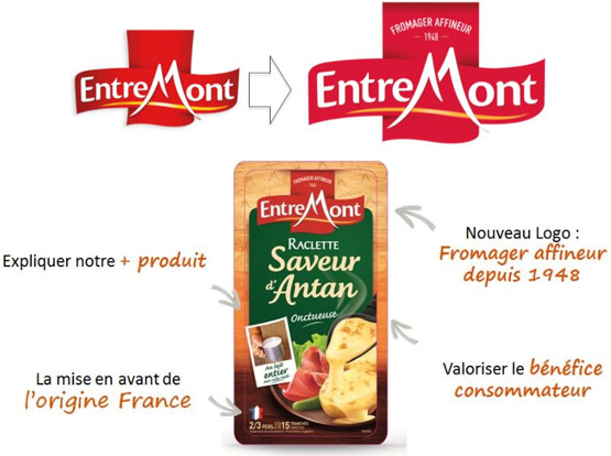 Entremont a retravaillé les packs de ses raclettes pour la saison 2017/2018. Ils intègrent son nouveau logo, désormais complété de la signature « Fromager affineur depuis 1948 » pour valoriser son savoir-faire historique. En effet, Entremont propose à ses consommateurs de la raclette fabriquée selon le décret fromage.