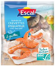 Avec sa large gamme de produits de la mer surgelés, Escal donne de l’inspiration en cuisine : crevettes à poêler, à griller, à cuisiner ou déjà cuites, cocktails de fruits de mer, moules, encornets, poissons entiers, spécialités marinées ou en beignets… Pour le quotidien comme pour les grandes occasions, Escal propose des fruits de mer savoureux et faciles à préparer. La marque a toujours eu à cœur de sélectionner ses produits pour leur goût et leur qualité, mais aussi en fonction de leur origine, privilégiant les méthodes de pêche et d’aquaculture responsables et les produits éco-certifiés ASC ou MSC.