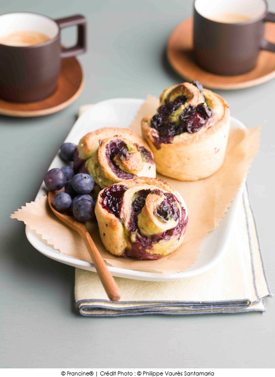 ⑩• Rouler la pâte sur elle-même pour former un escargot et déposer chaque rouleau dans les alvéoles d’un moule à muffins préalablement beurré.