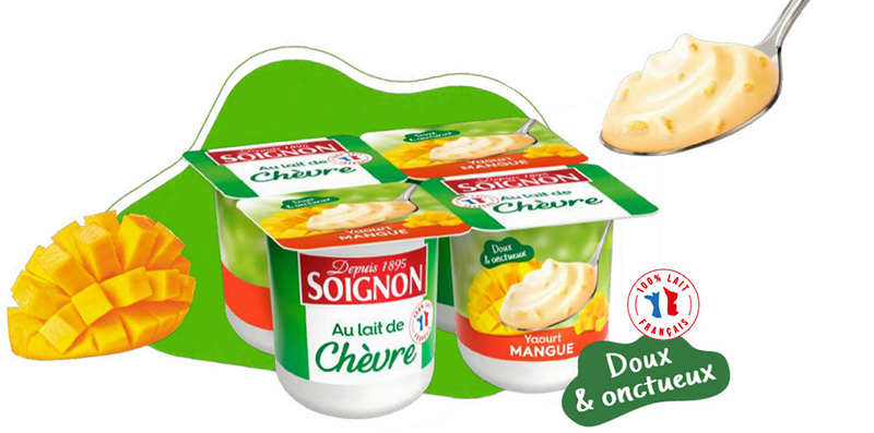 Et ce n’est pas tout, Avec son nouveau yaourt mangue au lait de chèvre, SOIGNON réduit le taux de sucre de ses yaourts d’environ 20%, une initiative qui devrait s’étendre bientôt à l’ensemble de la gamme.