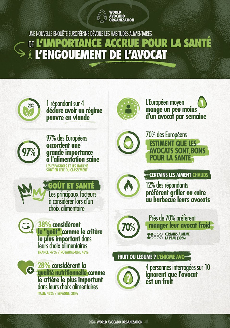 Nouvelle enquête européenne de l’Organisation Mondiale de l’Avocat sur les habitudes alimentaires : La santé au cœur des préoccupations et engouement confirmé pour l’avocat.