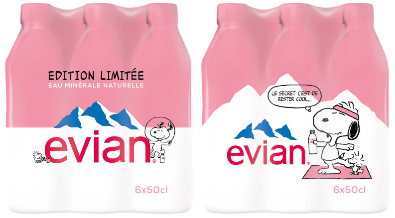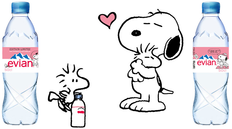Cet été, evian lance une édition limitée de ses bouteilles en format 50 cl, en collaboration avec le plus grand des philosophes à quatre pattes : Snoopy.