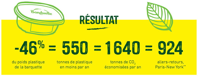 Pour ce faire, Bonduelle investit notamment dans la recherche et le développement d’emballages écoresponsables, ce qui se traduit par des transformations concrètes sur toutes les gammes de produits. Bonduelle a ainsi fait un premier pas avec la gamme de salade traiteur "Les Idées" dont les emballages sont composés de 50% de RPET et dont le couvercle avait déjà été supprimé pour réduire la consommation de plastique. Une démarche qui s’est poursuivie en 2020, avec le lancement de la gamme de salades Traiteur Bio proposée dans un emballage 100% RPET, avec des étiquettes en papier recyclé. Un pas en avant pour la planète puisque la réduction d’un seul gramme de plastique sur les barquettes Bonduelle permet de réduire la production de plastique de 50 tonnes par an !