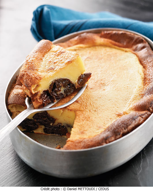 5• Beurrer un moule à manqué, y déposer les pruneaux, verser la pâte par-dessus et enfourner 45 mn environ.