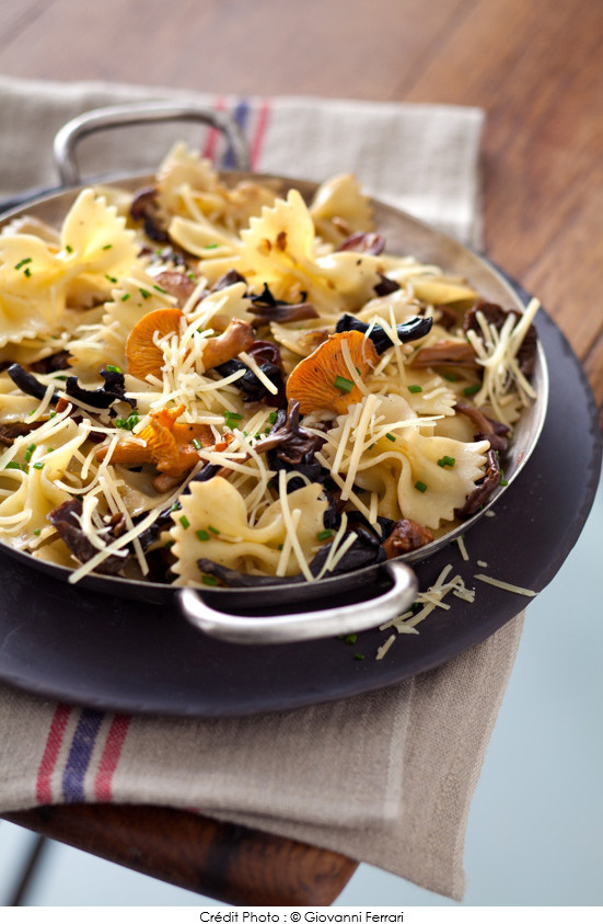 4• Égoutter les farfalle puis les verser dans la poêle contenant les champignons en ajoutant le beurre restant et les 3/4 du Gusto Intenso. Mélanger délicatement jusqu'à ce que le jus des champignons et le Gusto Intenso enrobent les farfalle. Servir dans des assiettes creuses et finaliser la préparation en parsemant le Gusto Intenso restant.