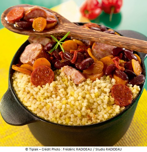 5• Préparez les Tendres Perles Tipiak comme indiqué sur le paquet et disposez-les dans un plat. Ajoutez dans le plat les légumes et la sauce des haricots rouges puis mélangez le tout.