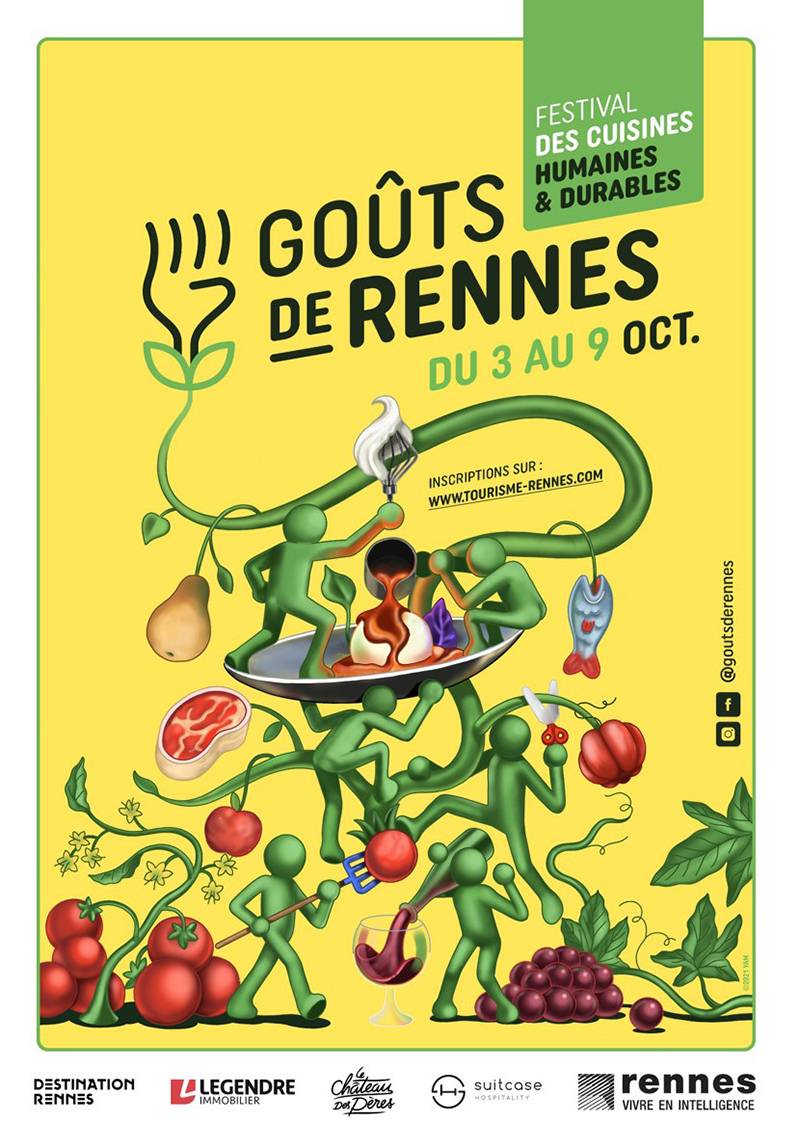 Goûts de Rennes est organisé en collaboration avec Destination Rennes et en partenariat exclusif avec Legendre Immobilier, filliale du Groupe Legendre, partenaire de la ville en mouvement, Suitcase Hospitality, développeur et exploitant d’hôtels dont le projet rennais Trinité, et Le Château des Pères, lieu d’art, de culture et de gastronomie rayonnant à Piré-Chancé, au sud de Rennes.