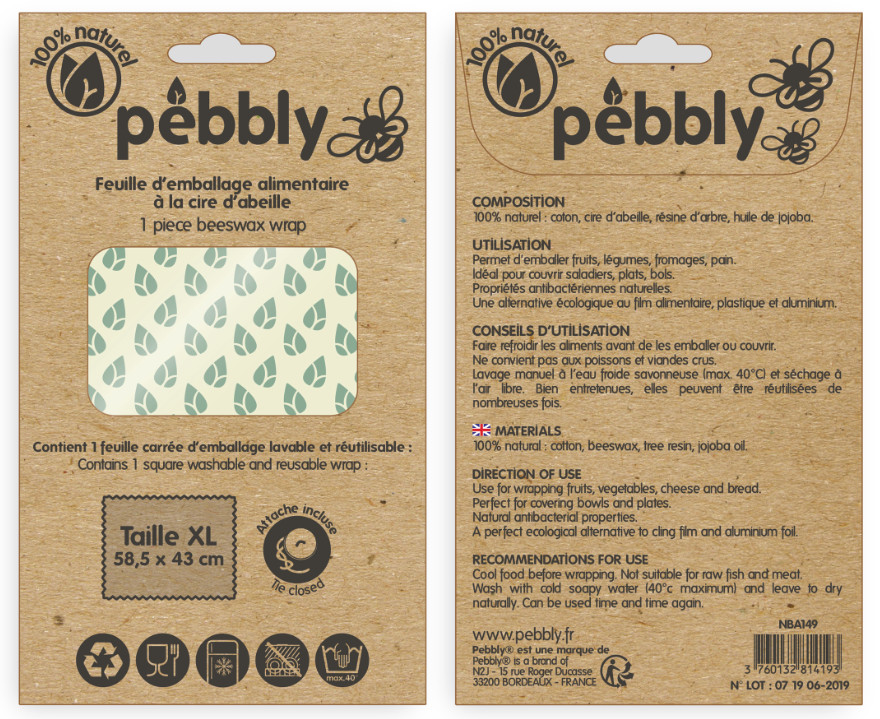 Feuilles d’emballage alimentaire à la “cire d’abeille” PEBBLY