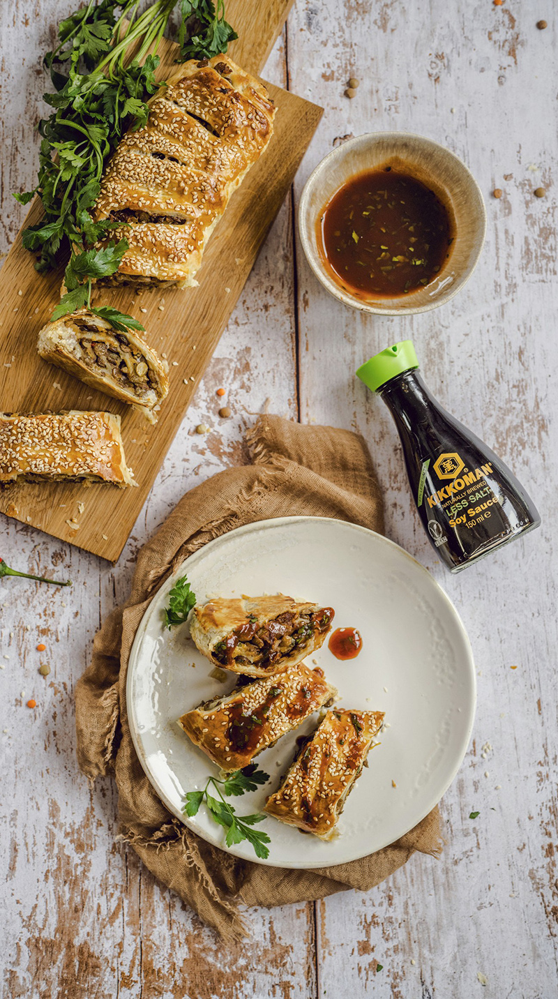 Un feuilleté à la crème de lentilles vertes et rouges, avec des tomates séchées et des herbes. Croustillant, onctueux, savoureux et même légèrement pimenté si vous le souhaitez.