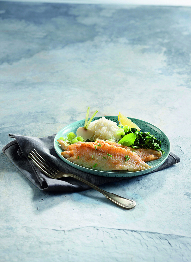 Servir les filets de merlan, avec le riz et les légumes. Ajouter un quartier de citron et parsemer de ciboulette ciselée.