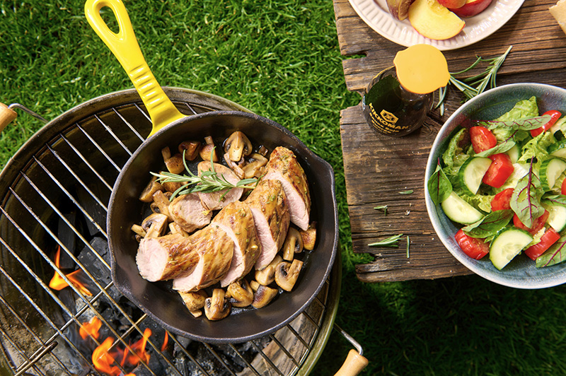 ①• Nettoyer et éponger le filet mignon. Dans un bol, mélanger la sauce soja sucrée Kikkoman, la moutarde de Dijon et l’ail haché. Ajouter le romarin haché. Enduire entièrement le filet de marinade et laisser reposer pendant au moins 30 minutes et jusqu’à 2 heures.