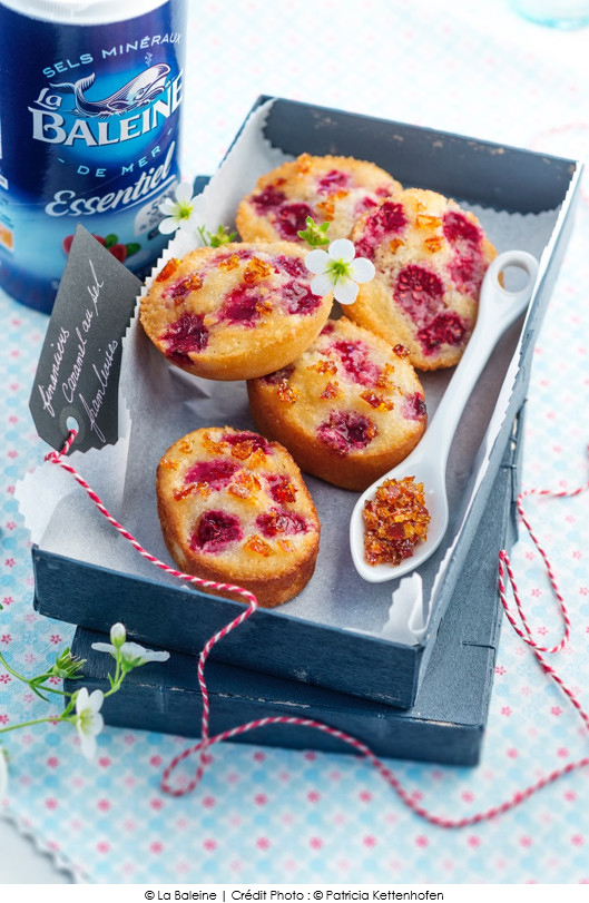 ⑦• Beurrer des moules et répartissez la pâte dans les moules au ¾. Enfoncer quelques framboises dans chaque moule et enfourner 15 minutes dans un four préchauffé à 180°C.