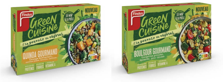 Rien de plus normal que tous les produits de la gamme Green Cuisine de Findus soient cuisinés sans colorant, sans conservateur, sans huile de palme et affichent tous un Nutri-Score… vert avec des notes A et B.