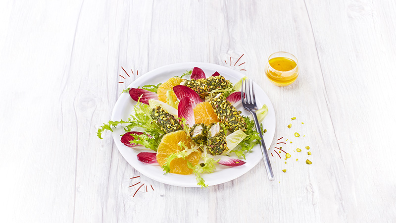 Fingers de lapin en croûte verte et salade d’hiver