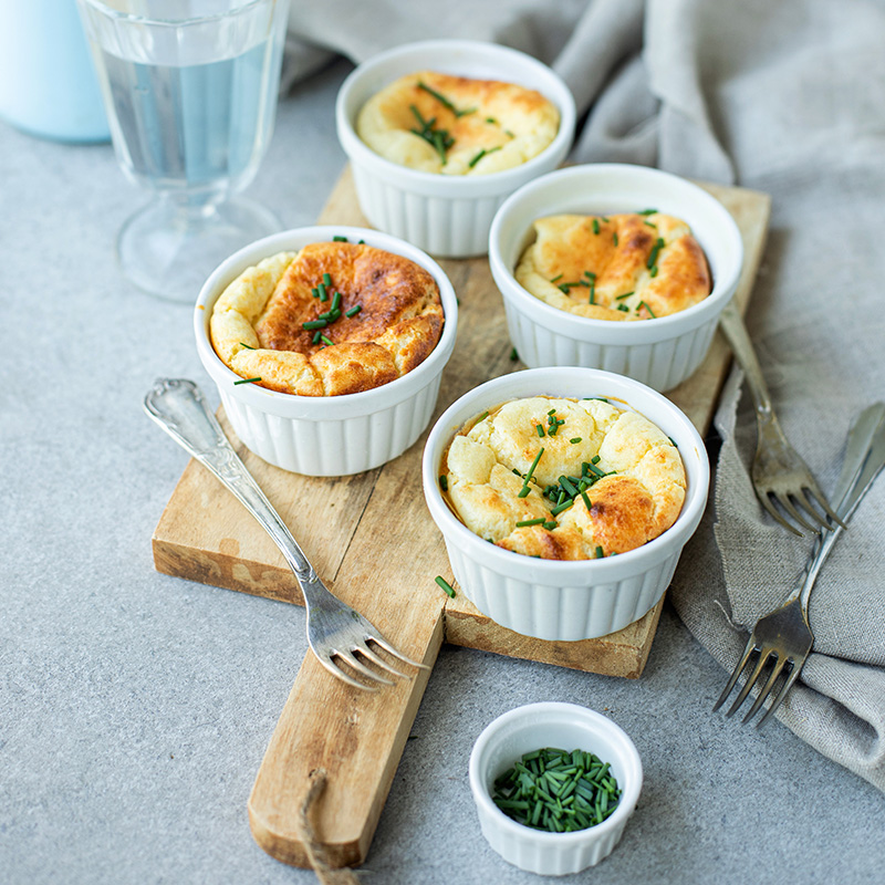 ④• Coulez dans des moules à flans et enfournez à 160°C (Th.5-6) pendant 20 minutes.