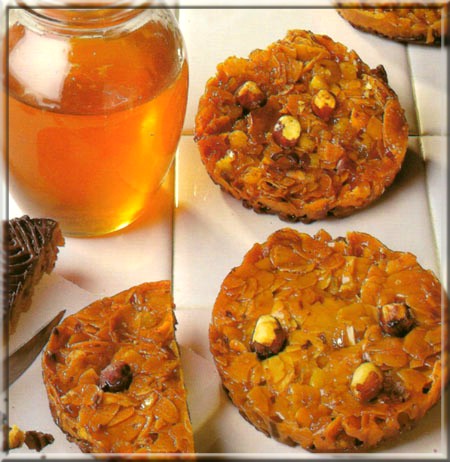 • Mélanger amandes,miel,écorces d'oranges coupées en petits dés et raisins.