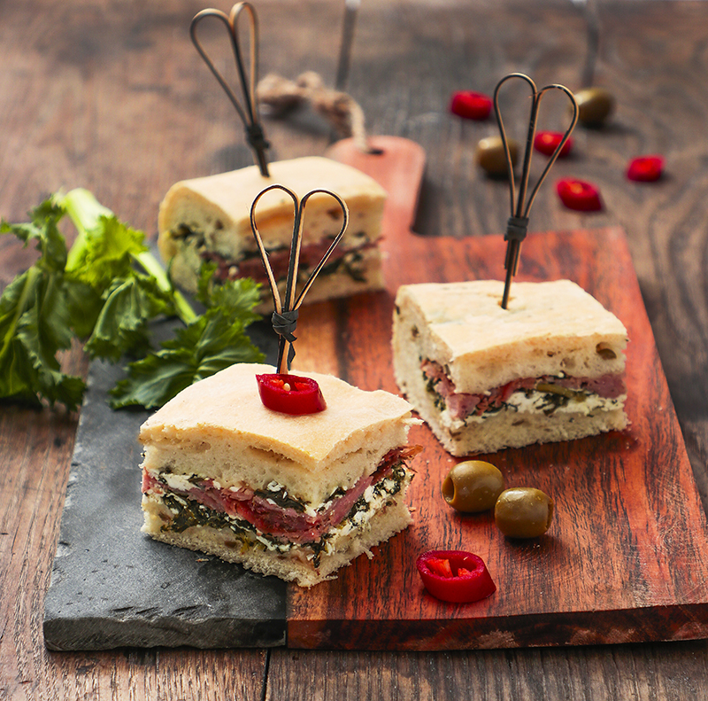 Focaccia apéritive au Jambon de Parme, brocoli et ricotta