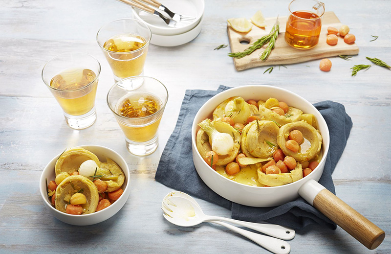 Fonds d’artichauts au cidre, romarin et safran