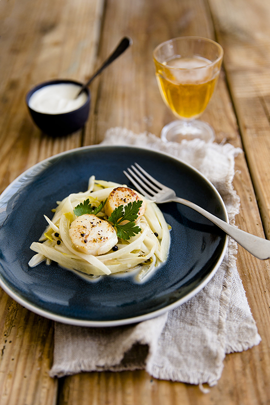 Fondue de Perles aux noix de Saint-Jacques et au cidre