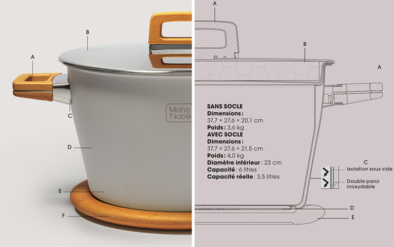 Le MAHO NABÉ – cocotte magique en japonais – est une innovation qui allie design, technique, exhausteur de goût et tradition culinaire japonaise, dont le chef Alain Passard est l’ambassadeur en France.