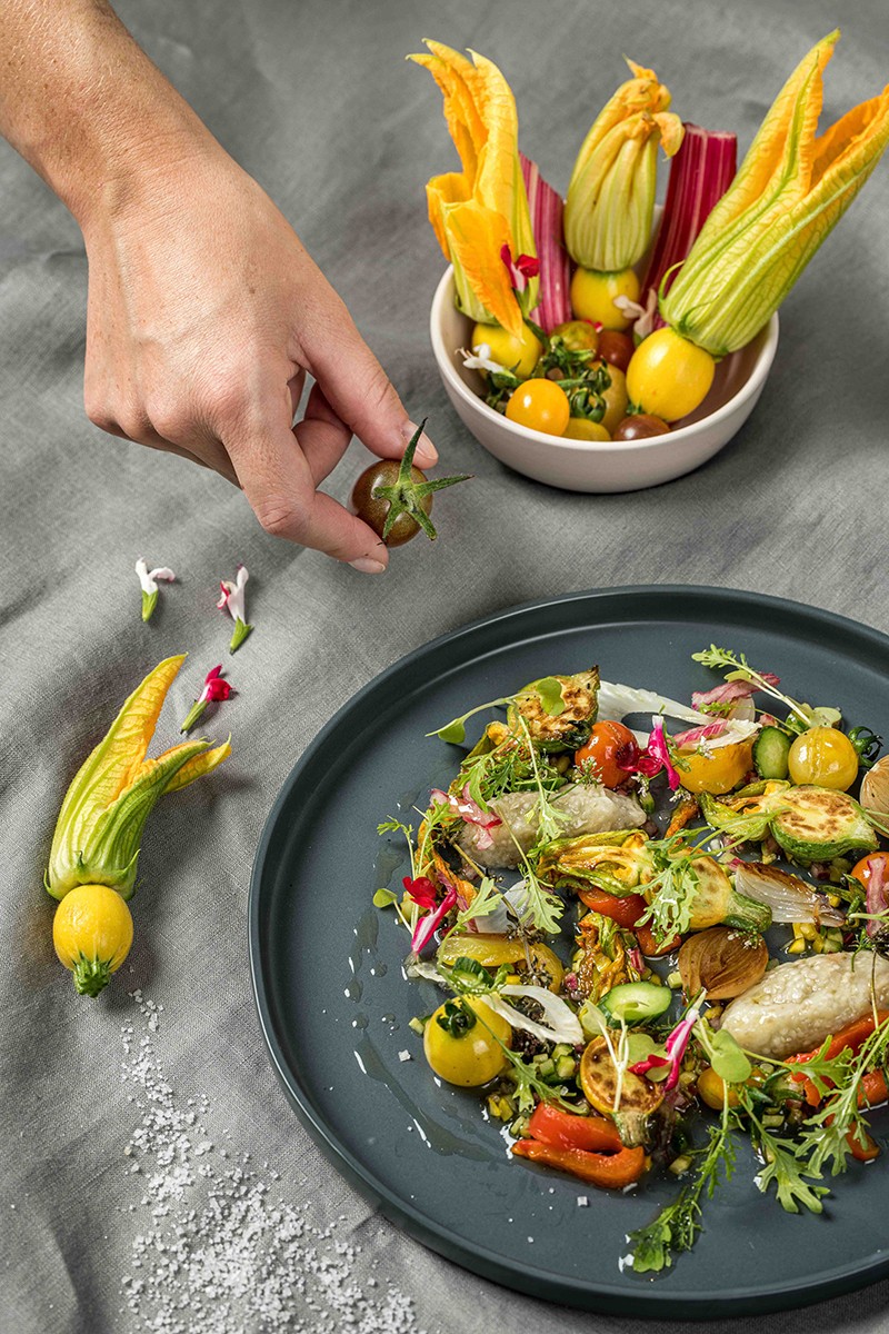 Le printemps s'invite à votre table avec cette recette fraîcheur de fondue de tomates à la courgette fleur et caviar d'aubergine. À déguster sans modération !