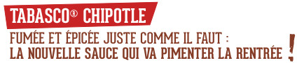 À la rentrée, on a envie de nouveauté… Ça tombe bien, car la célèbre marque de sauces épicées lance une nouvelle recette originale : le Tabasco® Chipotle ! Le secret de sa recette vient de ses piments rouges jalapeños fumés au goût “smoky” et équilibré en piquant. Une nouveauté qui bénéficie du savoir-faire unique et reconnu de la marque, régalant les amateurs de saveurs relevées depuis plus de 140 ans.