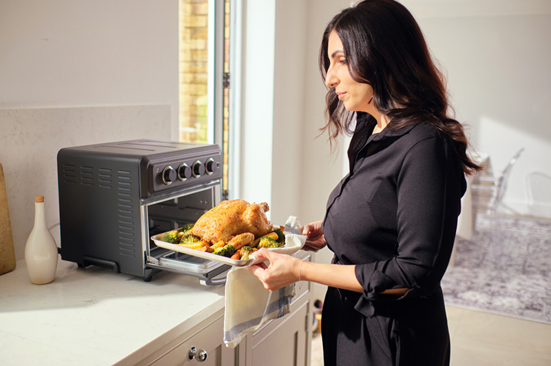 Le dernier appareil de Cuisinart combine les avantages d’une friteuse à air chaud à la polyvalence et à la commodité d’un mini-four. Avec un temps de chauffe ultra-rapide de 90 secondes, la Friteuse à air chaud Mini Four est prête à l’emploi quasi instantanément. Grâce à la technologie de son puissant flux d’air pulsé, elle cuit 30% plus rapidement qu’un four classique : vous pourrez ainsi obtenir des plats parfaitement cuits et de manière uniforme en quelques minutes seulement. Idéal pour gagner du temps en économisant de l’énergie !