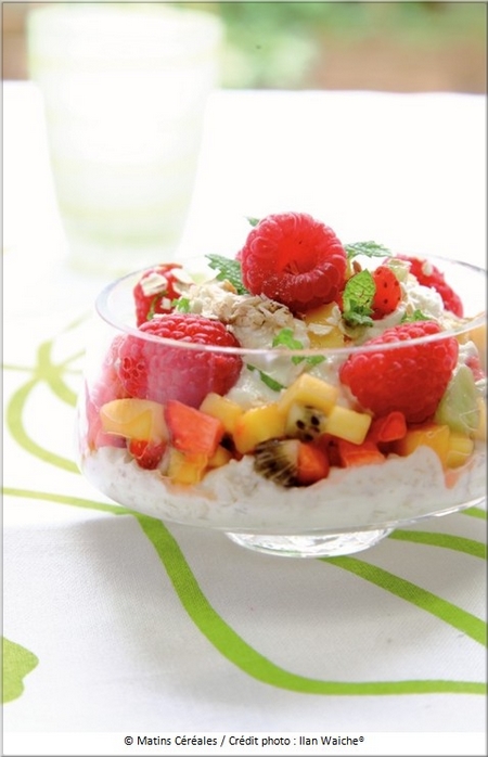 Fromage Blanc aux Flocons d’Avoine, Salade de Fruits Frais à la Menthe