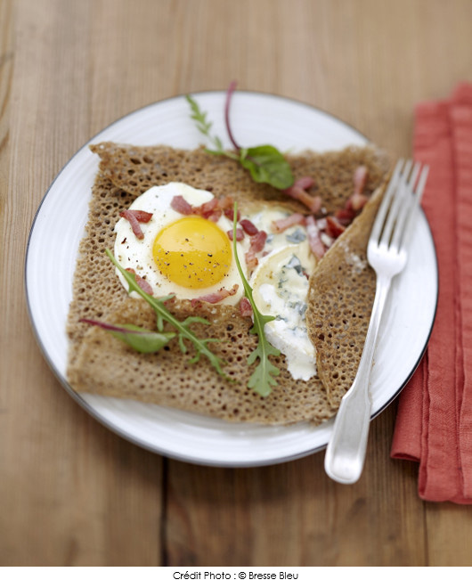 Galette de sarrasin au Bresse Bleu et aux lardons