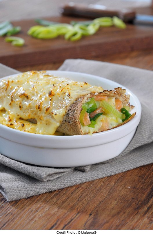 Galette poireau-saumon gratinée au curry
