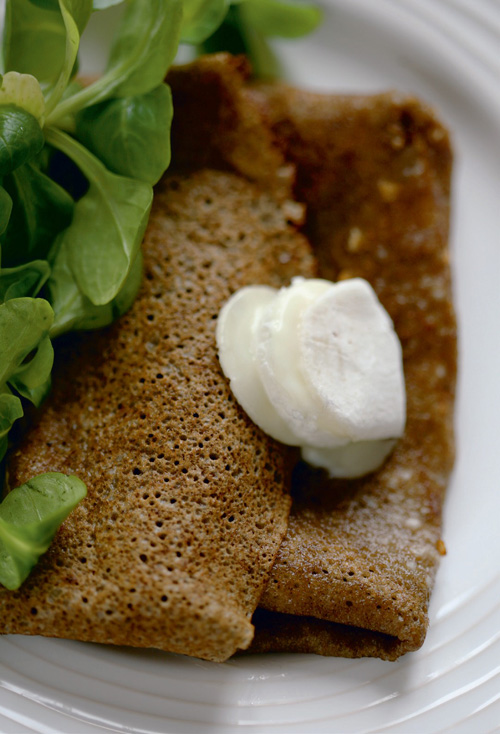 4• Termine en déposant sur la crêpe bien chaude un petit « bouton » de fromage découpé dans le cinquième rocamadour à l’aide d’un emporte-pièce.