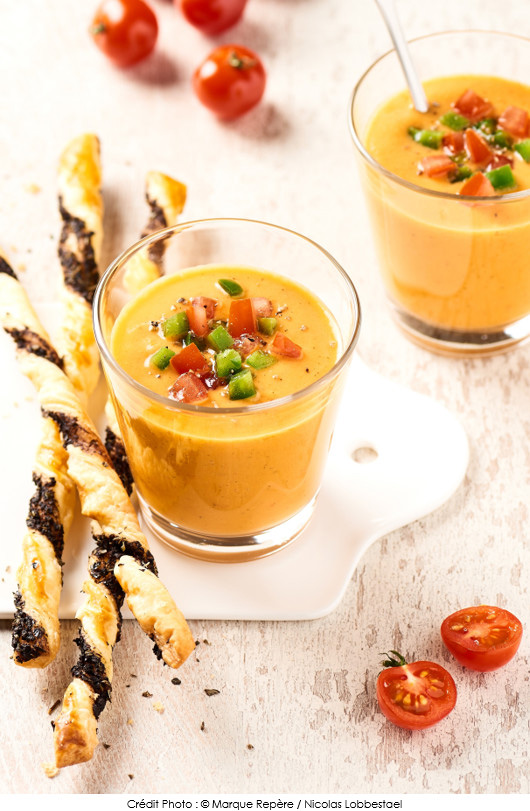 Une entrée colorée qui allie la fraîcheur d’un gaspacho