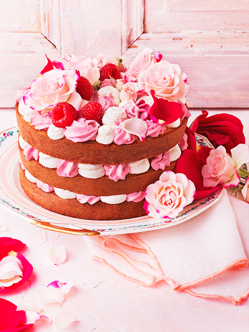 Astuce : ajoutez des pétales de rose ou des petites roses sur le dessus du gâteau pour la décoration.