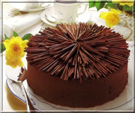 Démouler sur un plat. Râper le reste de chocolat avec un couteau bien aiguisé dans le largeur de la plaque. En décorer le dessus du gâteau.