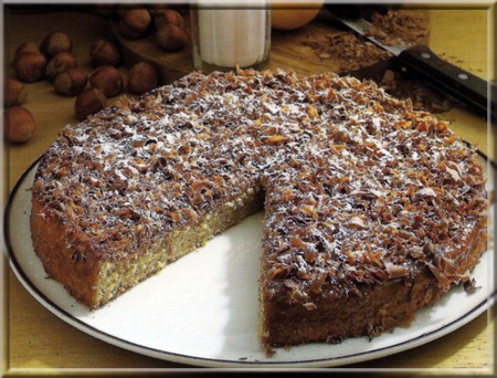En enduire le gâteau, le recouvrir de chocolat râpé et de sucre glace.