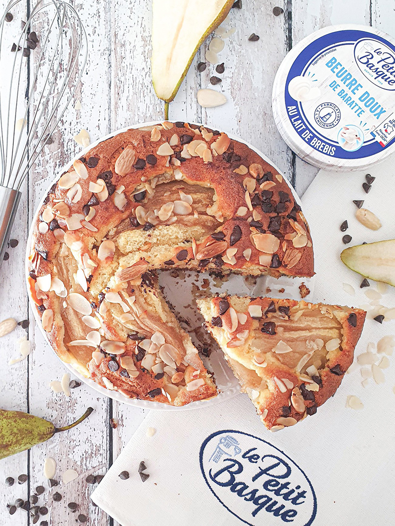Gâteau aux poires et pépites de chocolat au lait de brebis