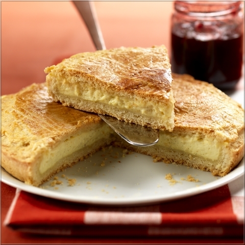 1• Je prépare la crème pâtissière : je fais bouillir le lait avec la gousse de vanille coupée en 2 dans le sens de la longueur. Dans un saladier, j’ajoute le sucre aux 2 jaunes d’œufs, fouette, ajoute la farine Francine et mélange. Je verse le lait tiède dans le saladier en tournant. Je reverse le liquide dans la casserole et remets sur feu moyen sans cesser de tourner. A la première ébullition, la crème pâtissière est prête. Je mélange bien et sors du feu. Je verse la crème pâtissière dans un saladier et laisse refroidir. Je prépare la pâte : je verse dans le robot, les farines, le sucre, le sel, l’œuf, le beurre et le rhum. J’obtiens une pâte, que je roule en boule et mets au réfrigérateur pour 2 ou 3h. Je sors la pâte du réfrigérateur, la laisse 30 min à température ambiante et la partage en 2/3 pour la pâte du fond du moule et 1/3 pour le disque du dessus. Je préchauffe le four à 210°C (Th.7).