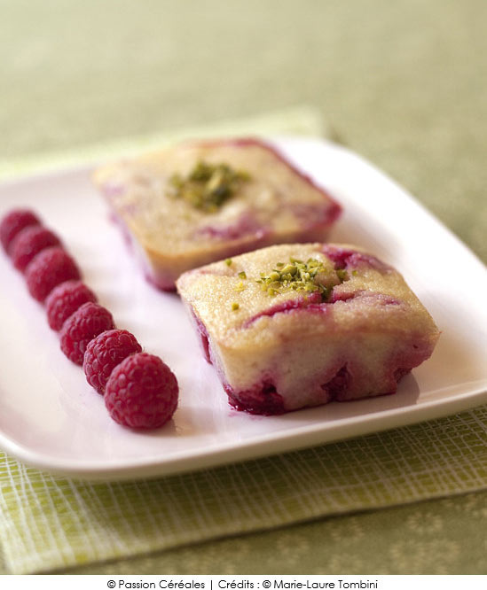 5• Répartissez la préparation dans des moules et répartissez les framboises dans la pâte.
