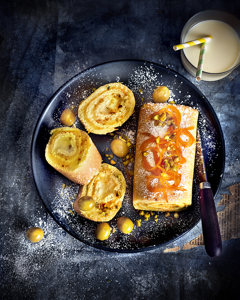 Gâteau roulé à l’orange et à la crème d’olives vertes Manzanilla