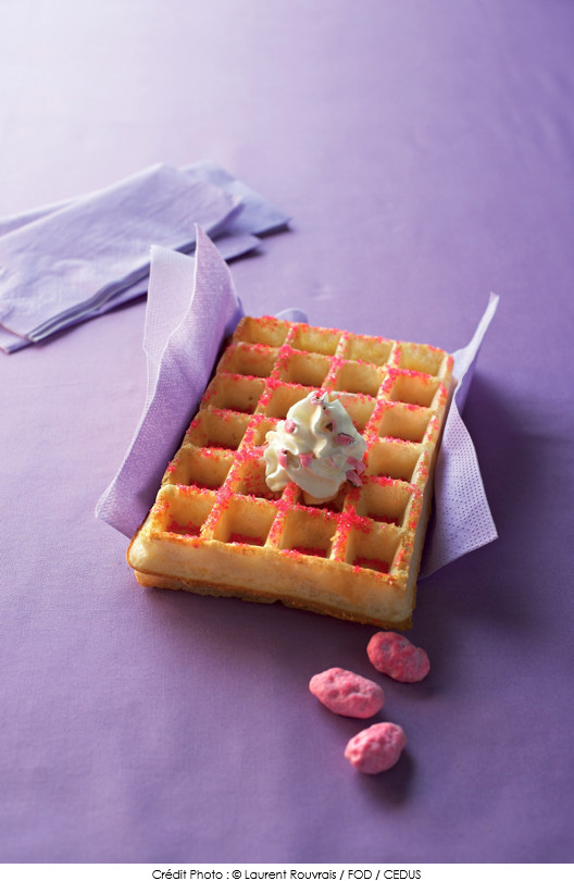 ②• Faire chauffer l’appareil à gaufres, verser un peu de pâte et faire cuire chaque gaufre 4 min (selon les appareils, vérifiez le temps de cuisson).
