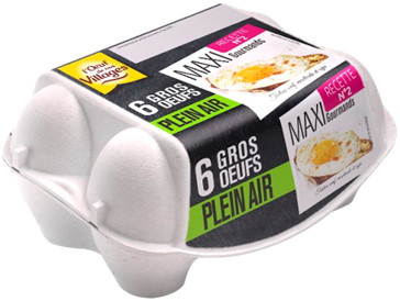 Avec la gamme plein air Maxi Gourmands, l’Œuf de nos Villages propose de gros œufs pour une cuisine gourmande au quotidien.