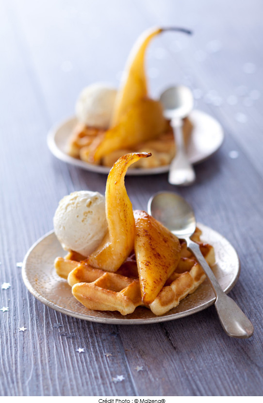 Gaufres tièdes et Poires rôties aux épices