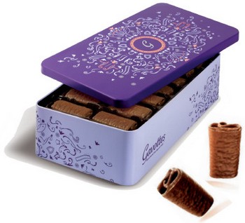 Gavottes propose cette année un coffret métallique au design élégant. La finesse de son décor évoquera aux gourmands celle de l’illustre Crêpe Dentelle. Ils s’ empresseront de découvrir le trésor qu’il dissimule : pour Noël c’est bien entendu un plaisir en chocolat !