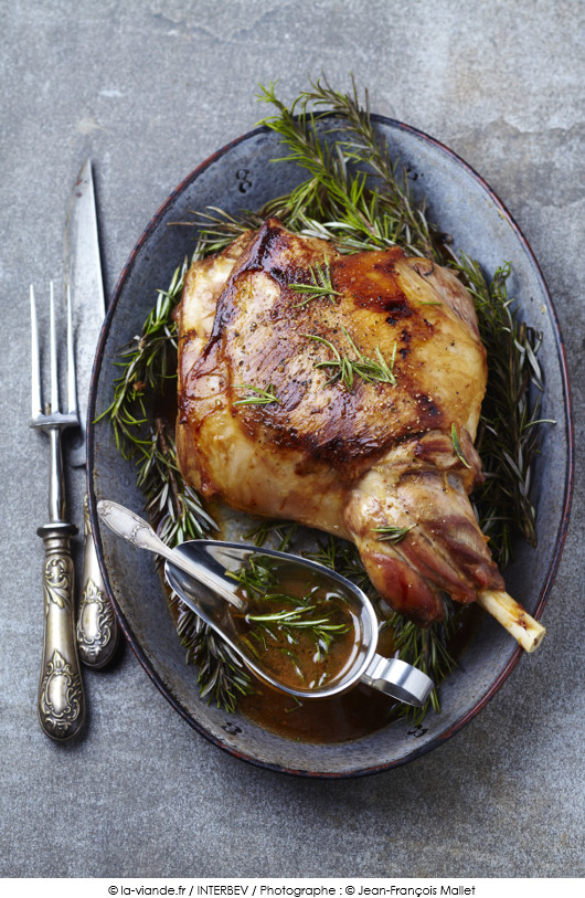 Servir le gigot accompagné du jus au romarin et d’une poêlée de légumes de saison.