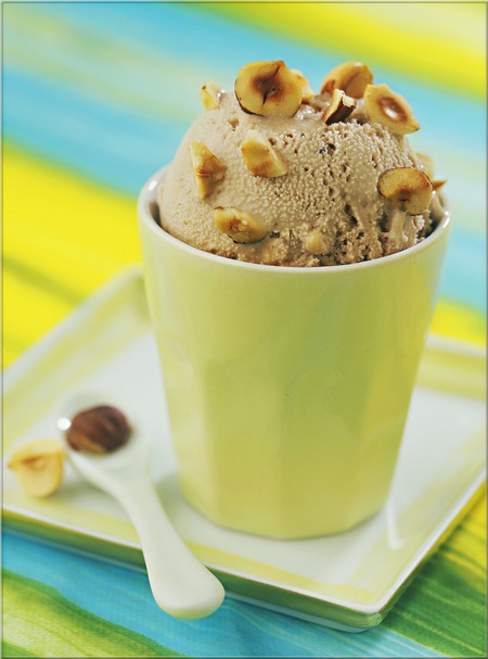 Note : on peut aussi napper la glace de sauce au chocolat avant de parsemer de noisettes.