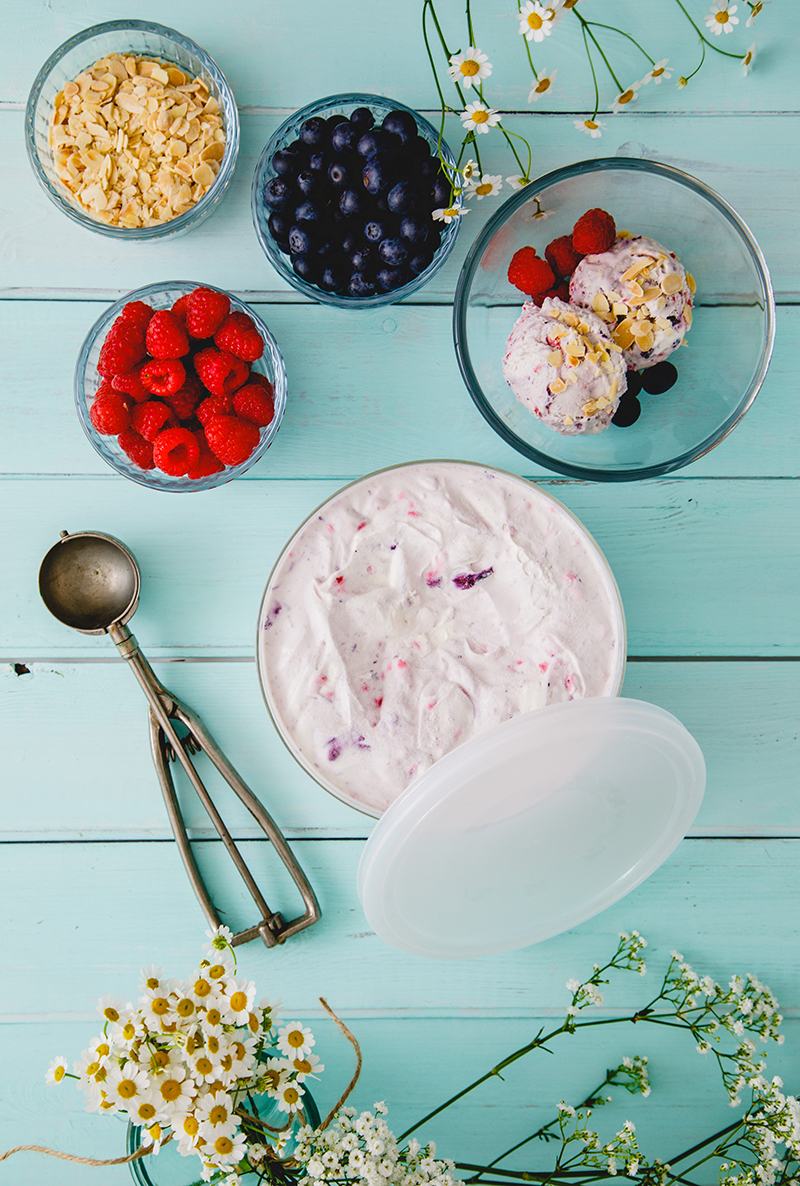 Pour les fans de crème glacée, Pyrex propose une recette de glace artisanale aux fruits rouges. Une recette à la fois saine, équilibrée et onctueuse !