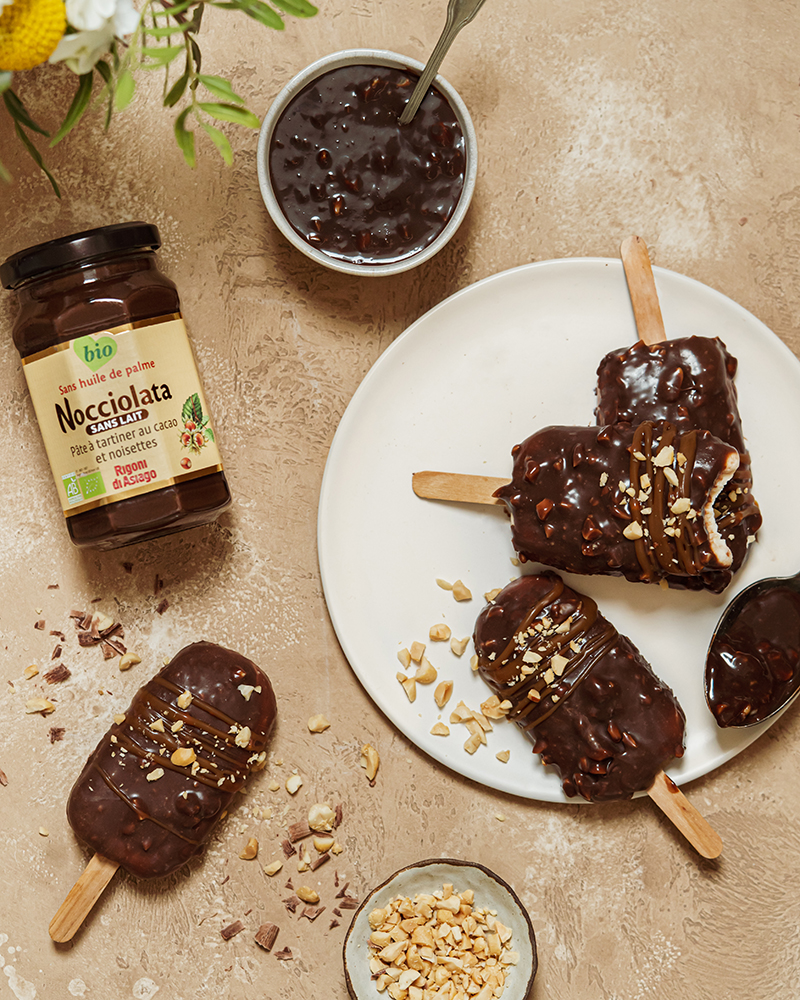 Glaces façon Snickers à la Nocciolata Sans Lait