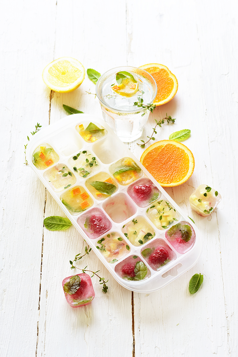 Glaçons aux fruits et aux herbes