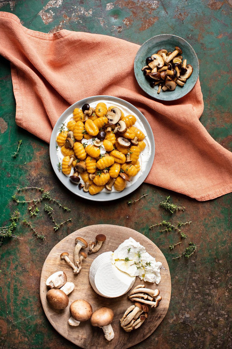 Gnocchi à poêler potiron, champignons, ricotta et thym