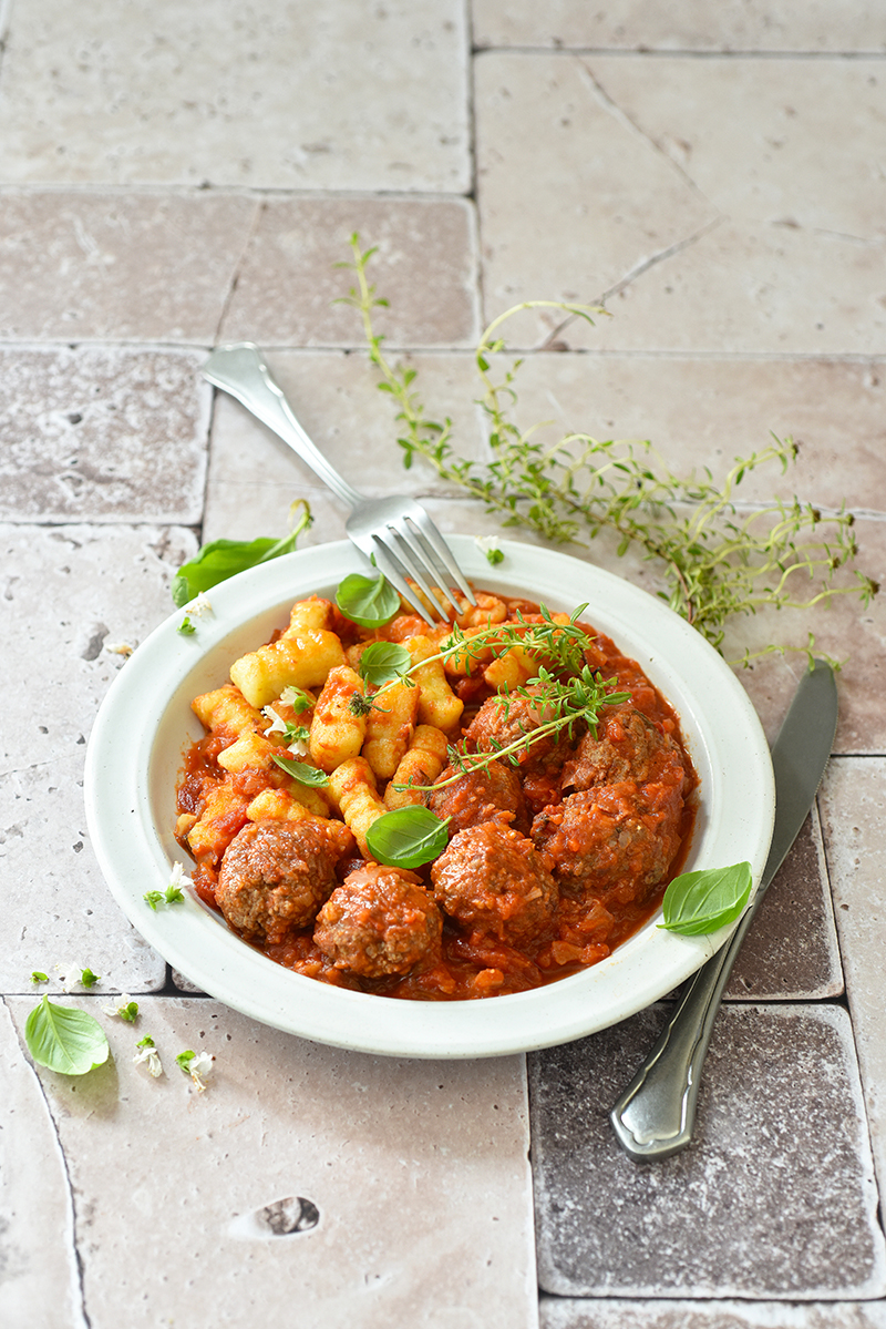 Gnocchis de Ratte du Touquet® et boulettes à la tomate